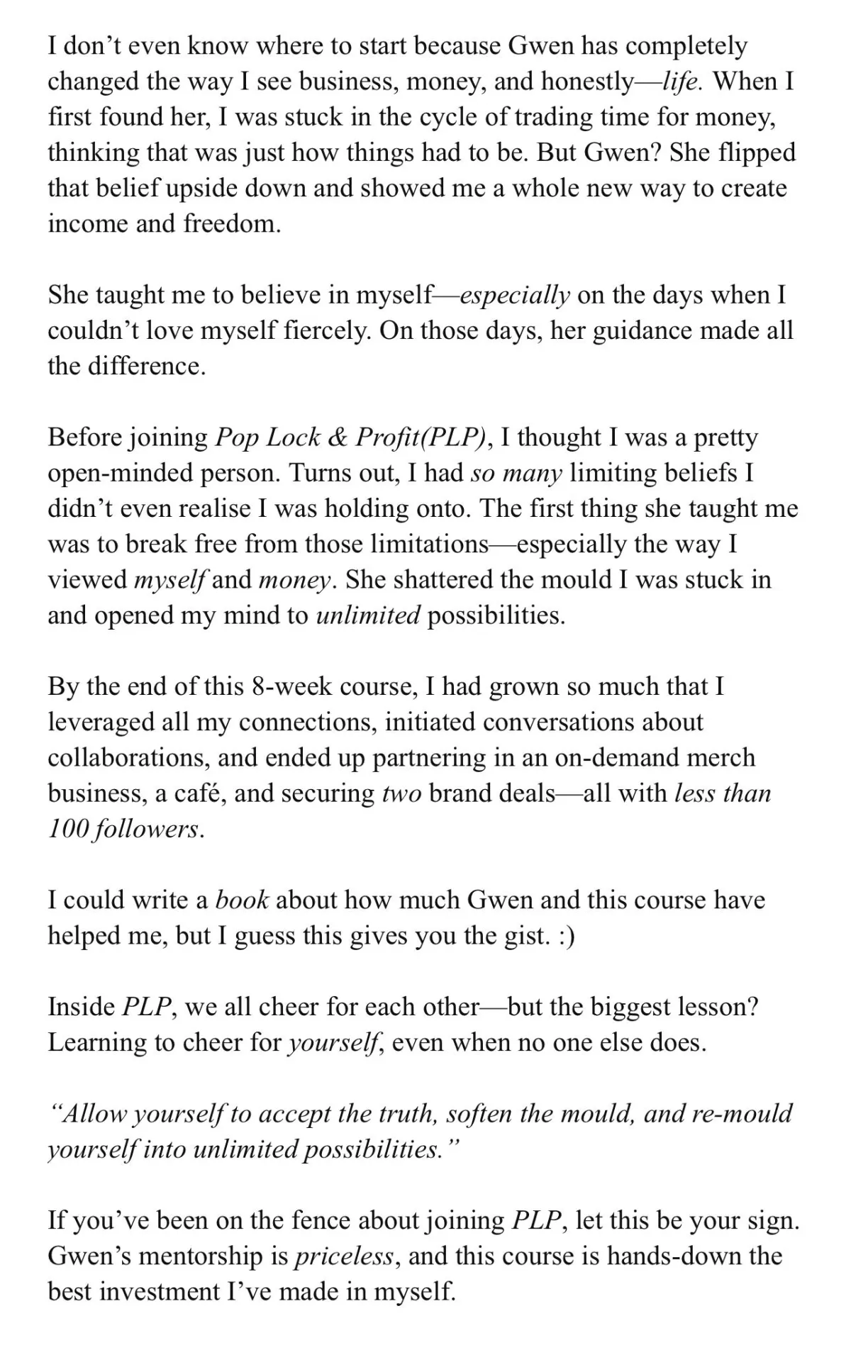 Gain access to the POP, LOCK & PROFIT course community + hub